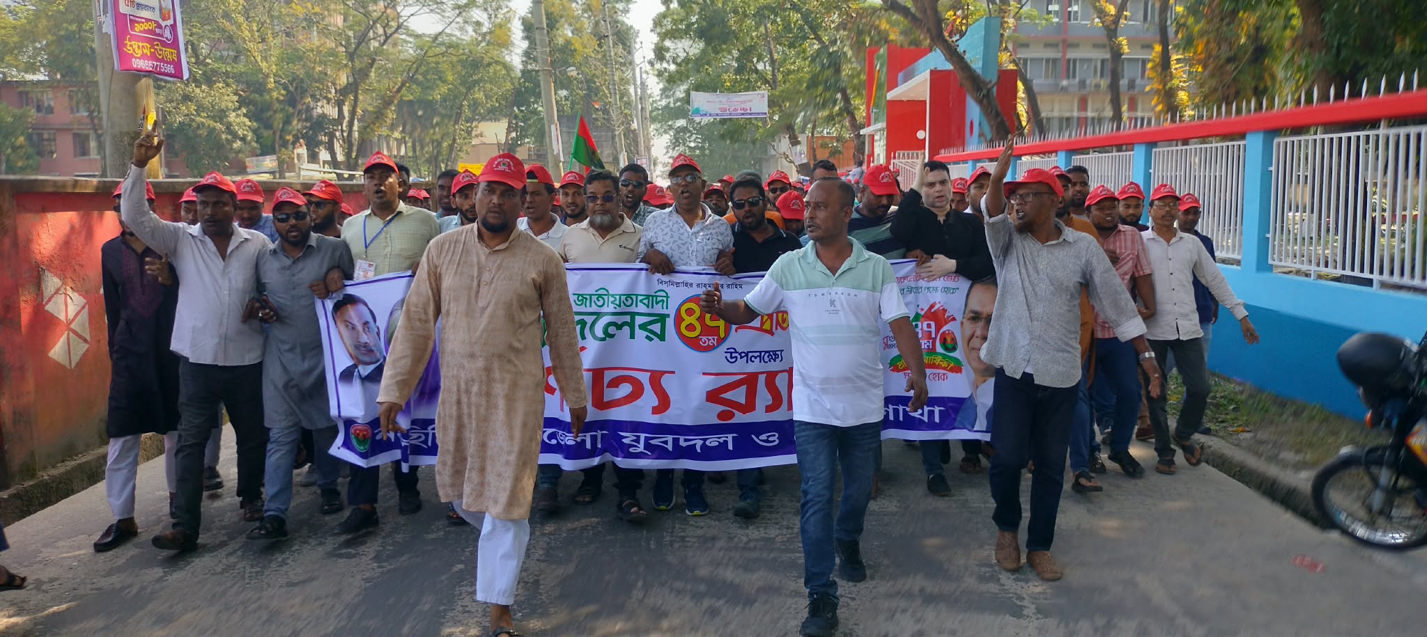 যুবদলের প্রতিষ্ঠাবার্ষিকীর অনুষ্ঠানে উপজেলা যুবদলের নেতৃবৃন্দের বিশাল মিছিল সহকারে যোগদান_
