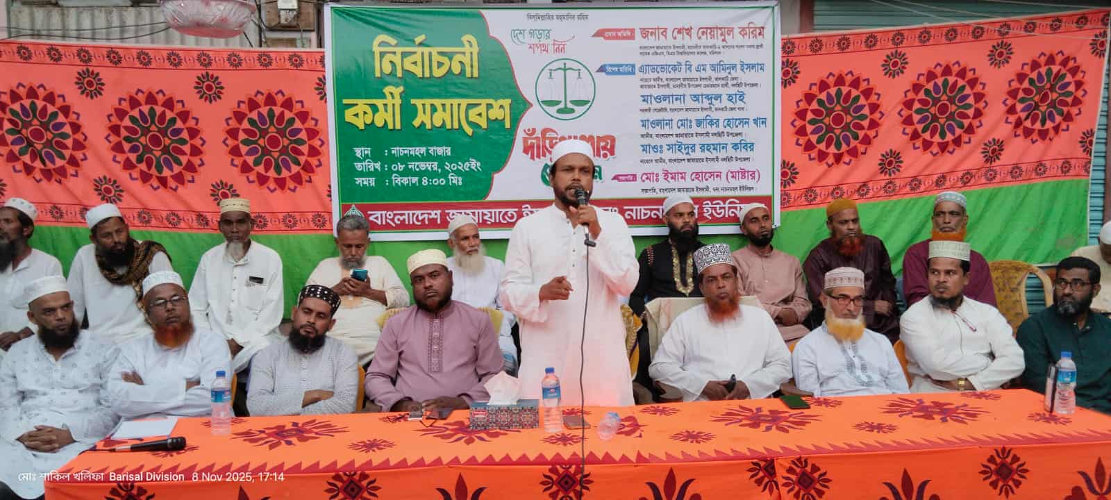 নির্বাচনী কর্মী সমাবেশ অনুষ্ঠানে, সভাপতিত্ব করেন, বাংলাদেশ জামায়াতে ইসলামী ০ ৭ নং নাচনমহল ইউনিয়ন শাখার সভাপতি, মোঃ ইমাম হোসেন ( মাস্টার)।