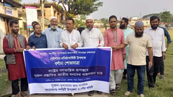 সুজনের তেইশতম প্রতিষ্ঠাবির্ষিকী উপলক্ষে নলছিটিতে আলোচনা সভা ও বর্ণাঢ্য শোভাযাত্রা অনুষ্ঠিত নলছিটি প্রতিনিধি: “সচেতন,সংগঠিত ও সোচ্চার জনগোষ্ঠী গণতন্ত্রের রক্ষাকবচ” এ প্রতিপাদ্যকে সামনে রেখে ঝালকাঠির নলছিটিতে তেইশতম প্রতিষ্ঠাবার্ষিকী যথাযথ মর্যাদায় পালিত