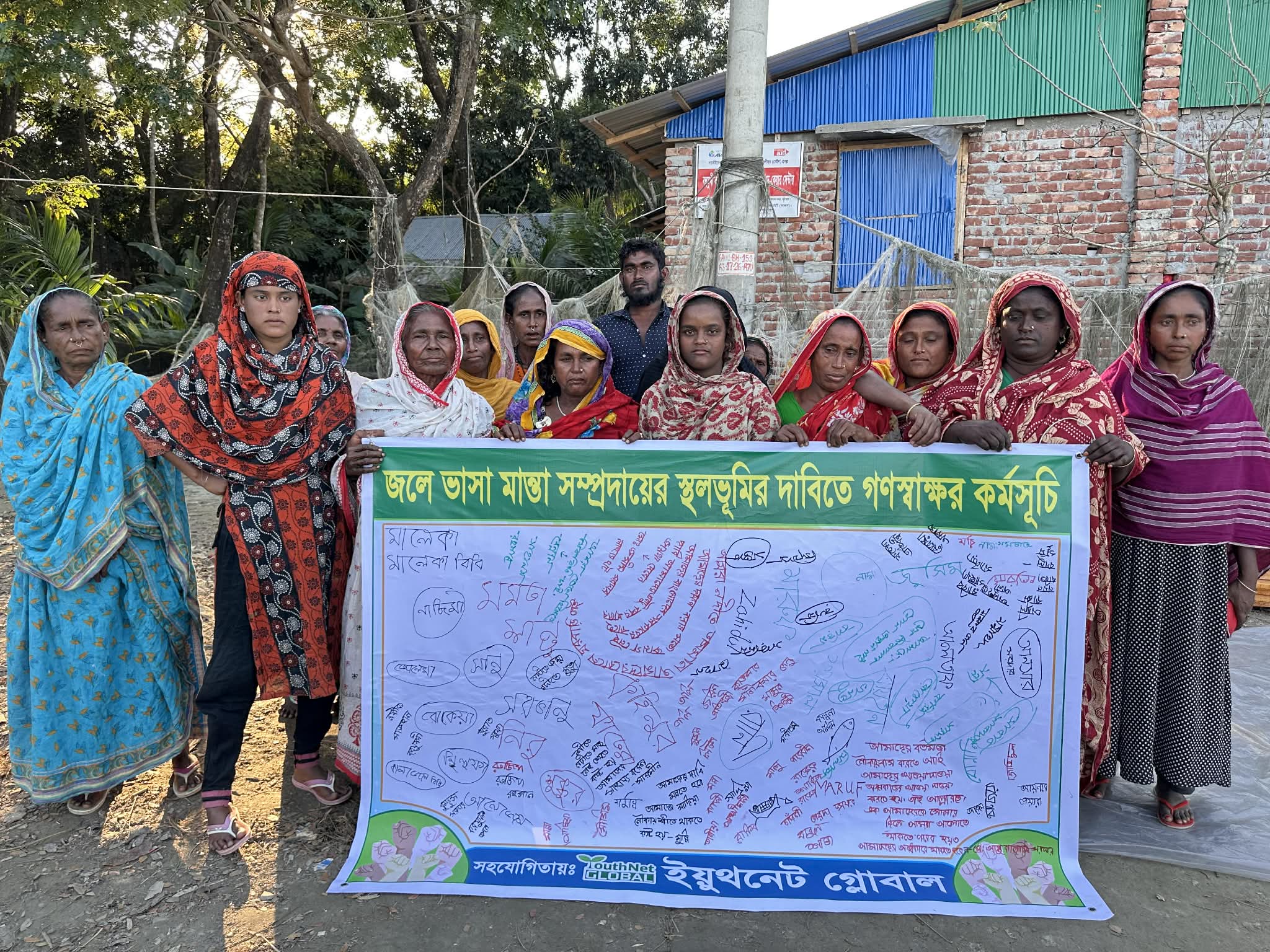 বরিশাল লাহারহাটে মান্তা সম্প্রদায়ের স্থলভূমির দাবিতে গণস্বাক্ষর কর্মসূচি