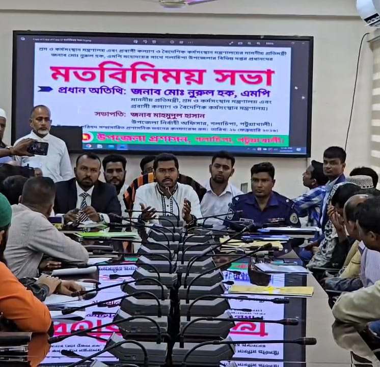 শনিবার সকাল ১০টায় গলাচিপা উপজেলা নির্বাহী অফিসার মাহমুদুল হাসানের সভাপতিত্বে উপজেলার হল রুমে সকল সরকারি কর্মকর্তাদের নিয়ে মতবিনিময় সভা প্রধান অতিথির বক্তব্যে বক্তব্যে এসব কথা বলেন পটুয়াখালী-৩ আসনের নবনির্বাচিত সংসদ সদস্য, গণপ্রজাতন্ত্রী বাংলাদেশ সরকারের শ্রম ও কর্মসংস্থান এবং প্রবাসী কল্যাণ ও বৈদেশীক কর্মসংস্থান মন্ত্রণালয়ের প্রতিমন্ত্রী মো. নুরুল হক।