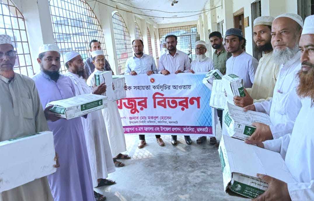 ঝালকাঠির কাঁঠালিয়া উপজেলা প্রশাসনের খেজুর বিতরণ