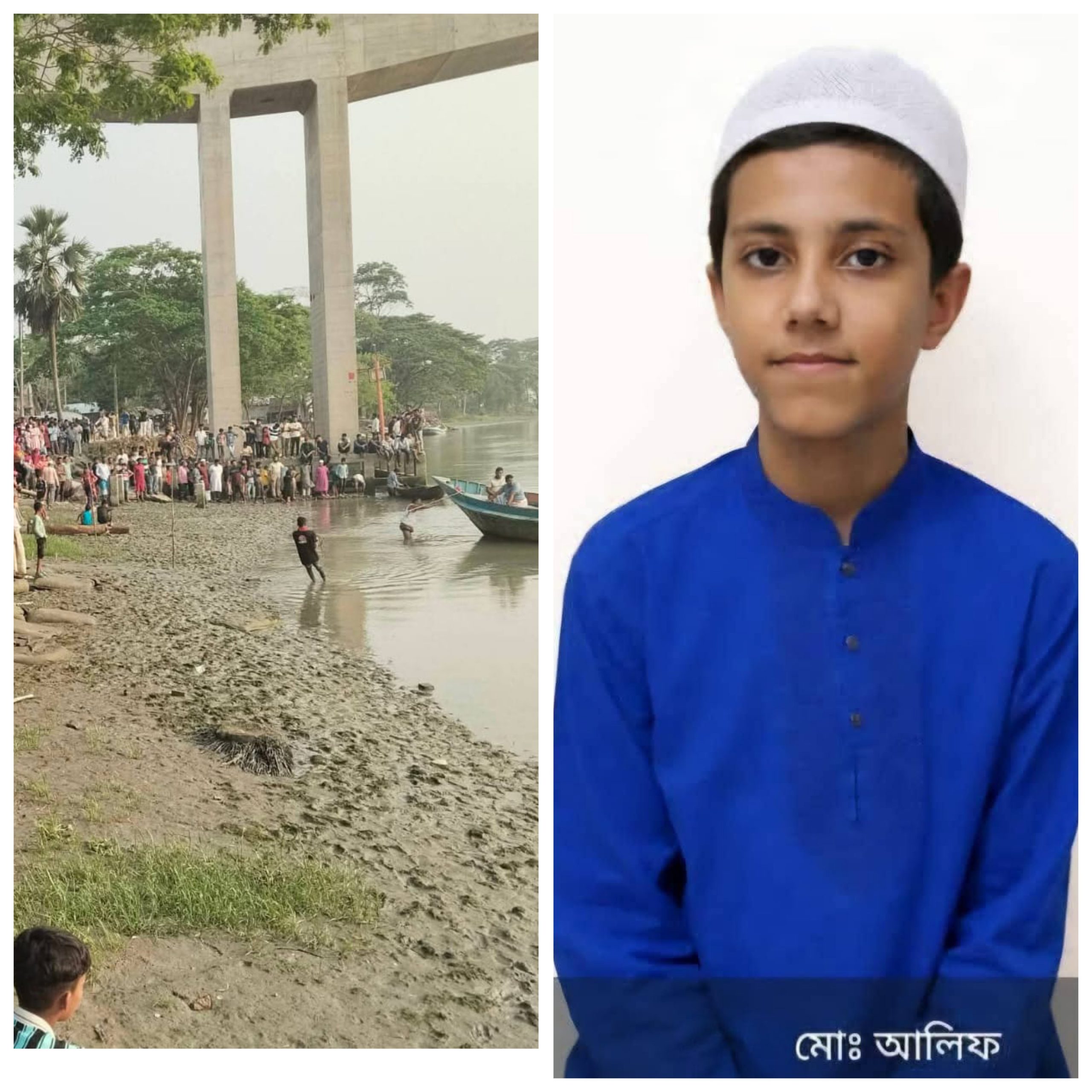 চোখের সামনে প্রিয়জনকে হারানোর সেই মুহূর্ত আজও ভুলতে পারছেন না স্বজনরা। স্থানীয়রা ছুটে এসে উদ্ধারের চেষ্টা চালালেও ব্যর্থ হন। পরে খবর পেয়ে বাংলাদেশ ফায়ার সার্ভিস ও সিভিল ডিফেন্স-এর ডুবুরি দল ঘটনাস্থলে এসে তল্লাশি শুরু করে। কিন্তু তিনদিনের দীর্ঘ অপেক্ষা আর অনিশ্চয়তার পর সোমবার দুপুরে ডুবে যাওয়া স্থান থেকেই ভেসে ওঠে আলিফের নিথর দেহ।