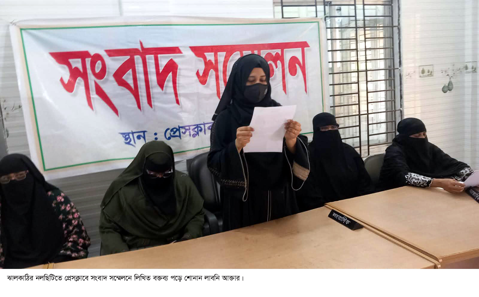 সংবাদ সম্মেলনে লিখিত বক্তব্যে লাবনী আক্তার অভিযোগ করেন, তাঁর শ্বশুর মোহাম্মদ আলী তালুকদার ২২ বছর আগে আফরোজা নিলু নামে এক নারীর কাছ থেকে পূর্ব মালিপুর বিআইপি সড়ক এলাকায় আড়াই শতাংশ জমি কেনেন| পরে নিলুর ভাইদের কাছ থেকে আরও ০.৫৫ শতাংশ জমি কিনে ২০১৯ সালে বাড়ি নির্মাণ শুরু করেন| পাশ্ববর্তী জমির মালিক শাহাজাদী রেকসনা ও তাঁর ভাইয়ের ছেলে নলছিটি পৌর ছাত্রদলের যুগ্ম আহ্বায়ক মেহেদী হাসান শাওন এতে বাধা দিয়ে আসছেন| এক পর্যায়ে তাঁরা আদালতের মাধ্যমে জমিতে ১৪৪ ধারা জারি করেন| এ ঘটনায় স্থানীয়দের উদ্যোগে সালিস ˆবঠকের মাধ্যমে জমি মেপে উভয় পক্ষকে নিজ নিজ অংশ বুঝিয়ে দেওয়া হয়| মামলাটিও নিষ্পত্তি করা হয় বলে সংবাদ সম্মেলনে তিনি দাবি করেন|