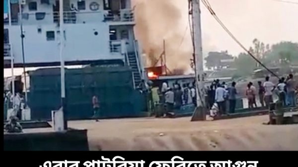 পাটুরিয়ায় ফেরিতে আগুন স্টাফ রিপোর্টার:- মানিকগঞ্জে পাটুরিয়া-দৌলতদিয়া নৌ-রুটে চলাচলকারী ‘কেরামত আলী’ নামের একটি ফেরিতে হঠাৎ আগুন লাগার ঘটনা ঘটেছে। এ সময় আগুনের কারণে ঘন কালো ধোঁয়ার সৃষ্টি হলে যাত্রীদের