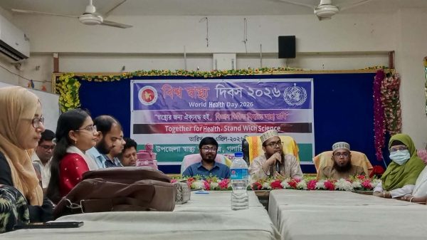 গলাচিপায় বিশ্ব স্বাস্থ্য দিবস ২০২৬ পালিত সঞ্জিব দাস, গলাচিপা (পটুয়াখালী) প্রতিনিধি: “স্বাস্থ্যের জন্য ঐক্যবদ্ধ হই, বিজ্ঞানভিত্তিক সিদ্ধান্তে আস্থা রাখি”—এই প্রতিপাদ্যকে সামনে রেখে সারা দেশের ন্যায় পটুয়াখালীর গলাচিপায় যথাযোগ্য মর্যাদায়