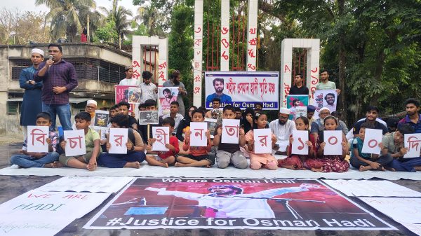 বিচারহীনতার ১০০ দিনে হাদির শহরে নতুন সংগঠন “ওসমান হাদি স্মৃতি মঞ্চ” উদ্বোধন করলেন বোন মাসুমা হাদি। বালী তাইফুর রহমান তূর্য, ভারতীয় আধিপত্যবাদ বিরোধী লড়াইয়ের সৈনিক ইনকিলাব মঞ্চের মুখপাত্র ও